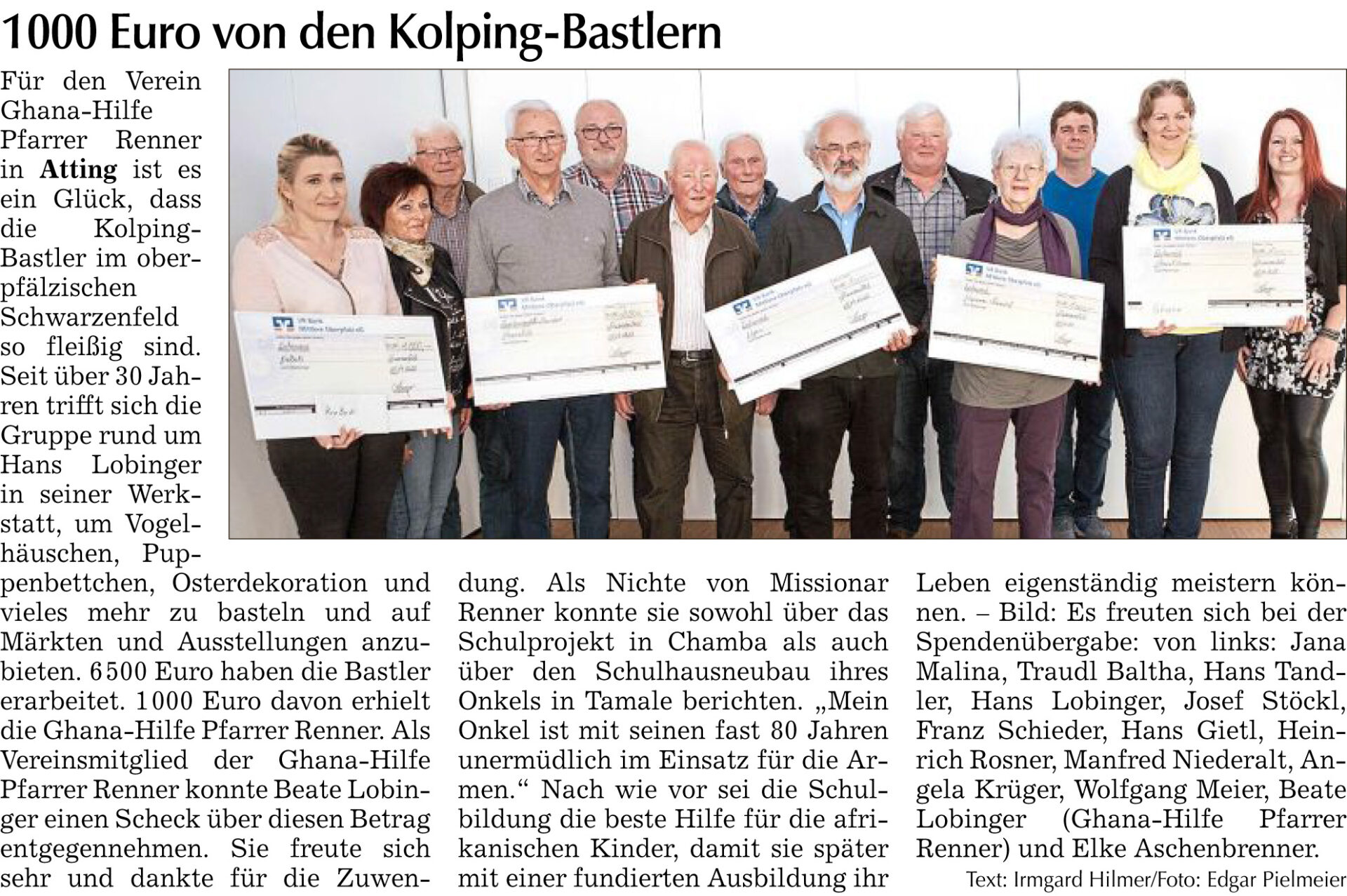 Straubinger TagblattStartseitePresse1000,– Euro von den Kolpingsbastlern für Ghana-Hilfe 11. Mai 2022 Straubinger Tagblatt