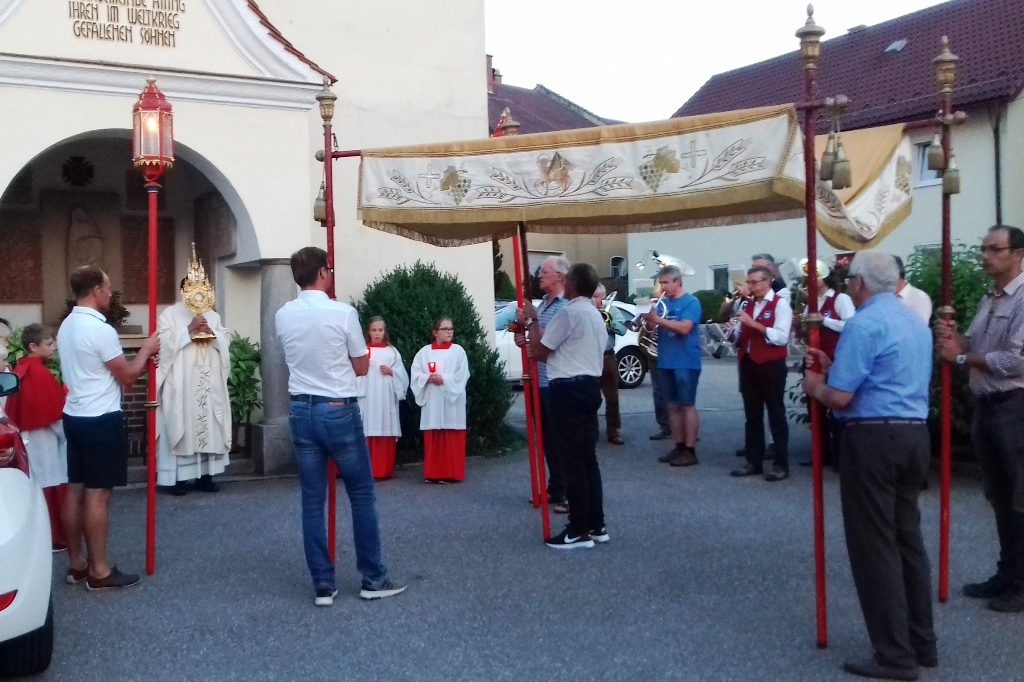 Den musikalischen Bestandteil des feierlichen Gottesdienstes gestaltete der Kirchenchor Atting-Perkam unter der Leitung von Heinrich Reif. Am Ende des festlichen Gottesdienstes segnete P. Jerish die Kräuterbüschel. Im Anschluss führte die eucharistische Prozession durch verschiedene Straßen der Ortschaft. Hier hatte Lothar Biendl jun. die Aufgabe des Vorbeters übernommen und die Bläserfreunde Rain sorgten für die musikalische Gestaltung.Die Gläubigen begleiteten die Prozession mit brennenden Kerzen, teilweise waren auch die Häuser entlang der Wegstrecke mit Kerzen geschmückt. Am Kriegerdenkmal spendete P. Jerish den eucharistischen Segen und dankte allen, die mitgewirkt haben: Ministranten, Lektoren, Kirchenmusik, Bläserfreunden, sowie den Himmel- und Laternenträgern.