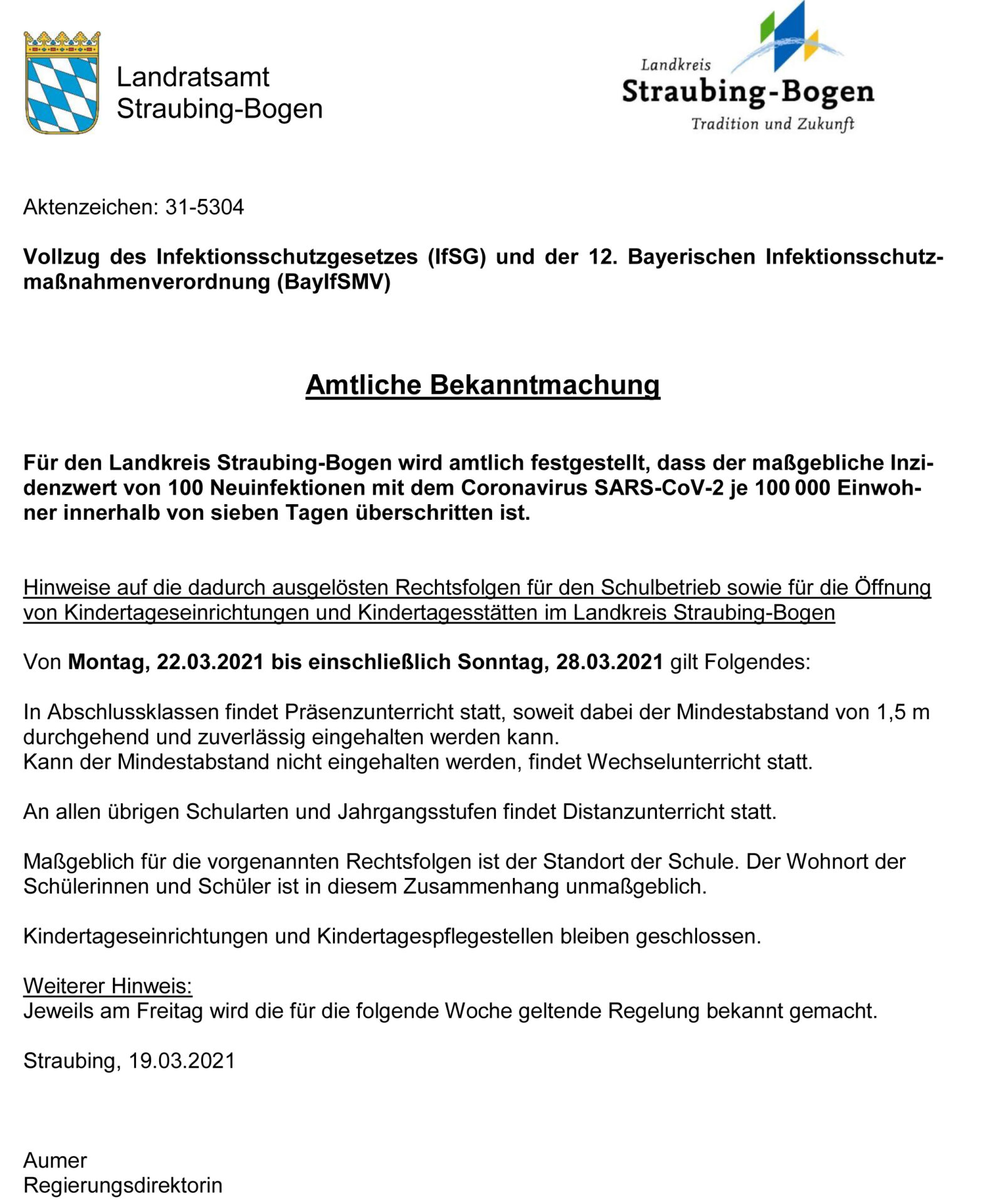 Hier können Sie dieses Schreiben als pdf herunterladen und ggf. ausdrucken: Amtliche Bekanntmachung-Inzidenz -ab 22.03.2021