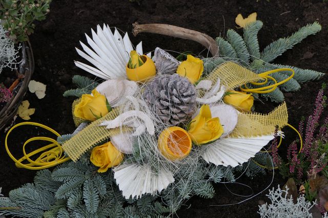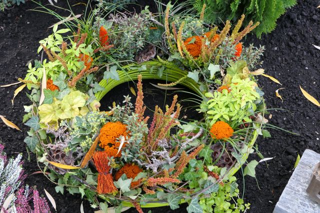 Die Gräbersegnung war in unseren Pfarrgemeinden gestern an Allerheiligen. Viele Leute haben unsere Friedhöfe besucht und haben an den Gräbern ihrer lieben Verstorbenen gebetet. Es ist aber auch schön, einfach durch die Grabreihen zu gehen und zu schauen. Man entdeckt – gerade bei uns am Dorf – viele Namen von Bekannten und manchmal ist man überrascht, wielange das Todesdatum schon zurückliegt. Viele Gedanken und Erinnerungen werden wach. Und was auch gerade zu dieser Jahreszeit faszinierend ist – der wunderbare Grabschmuck. Da waren sehr viele fleißige Hände am Werk, viele kreative Ideen wurden umgesetzt und überall spürt man die Verbundenheit „über das Grab hinaus“. So viel Liebe zum Detail wie auf den Gräbern unseres Friedhofs sieht man nicht oft. Jeder und jede legt viel Wert auf das Schmücken und die Pflege des Grabes. Blumen, eigens gefertigte Gestecke und Kerzen werden auf die Gräber gelegt und gestellt. Beim Grabschmuck gibt es kein richtig oder falsch… Die Wahl von Blumen und Gestecken entspricht oft den Vorlieben der Verstorbenen oder auch dem eigenen Geschmack. Ob Chrysanthemen, Alpenveilchen oder Rosen, Zapfen, Moos oder Rindenstücke – alles ist erlaubt und alles ist zu finden. Wer sich mit der Symbolik des Grabschmucks auskennt, kann zudem mit der entsprechenden Wahl noch viel mehr ausdrücken, als seine Trauer und sein Gedenken zu bezeugen. So steht zum Beispiel der Kranz aufgrund seiner Kreisform für die Ewigkeit – er ist frei von Anfang und Ende.
