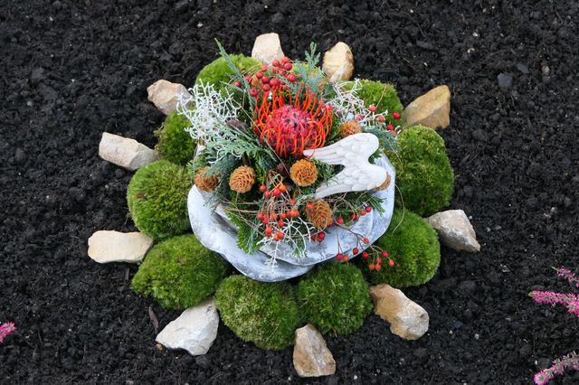 Bei der Grabschmuckgestaltung hat sich in den letzten Jahren auch ein Wandel eingestellt. Während früher der Trauergedanke und zurückhaltende Farben dominierten, so findet man mittlerweile oft auch kräftigere Farben. Sie erinnern besonders an glückliche Stunden und fröhliche Momente. Auch viele Herzen, Engel oder aussagekräftige Sprüche finden sich. Natürlich sind auch Gräber „Ton in Ton“ oder „ganz in weiß“ gernauso schön anzuschauen, wie farbenfroh und bunt! Ein besonderer Trend sind immergrüne Blattschmuckpflanzen wie Ziergräser, Heidegewächse oder Silberblätter. Es gibt unendlich viele Möglichkeiten, schöne Akzente zu setzen. Licht fehlt auf keinem Grab. Das Licht auf den Gräbern zeigt, dass die Verstorbenen nicht vergessen sind und erinnern an das Osterlicht, an die Auferstehung.