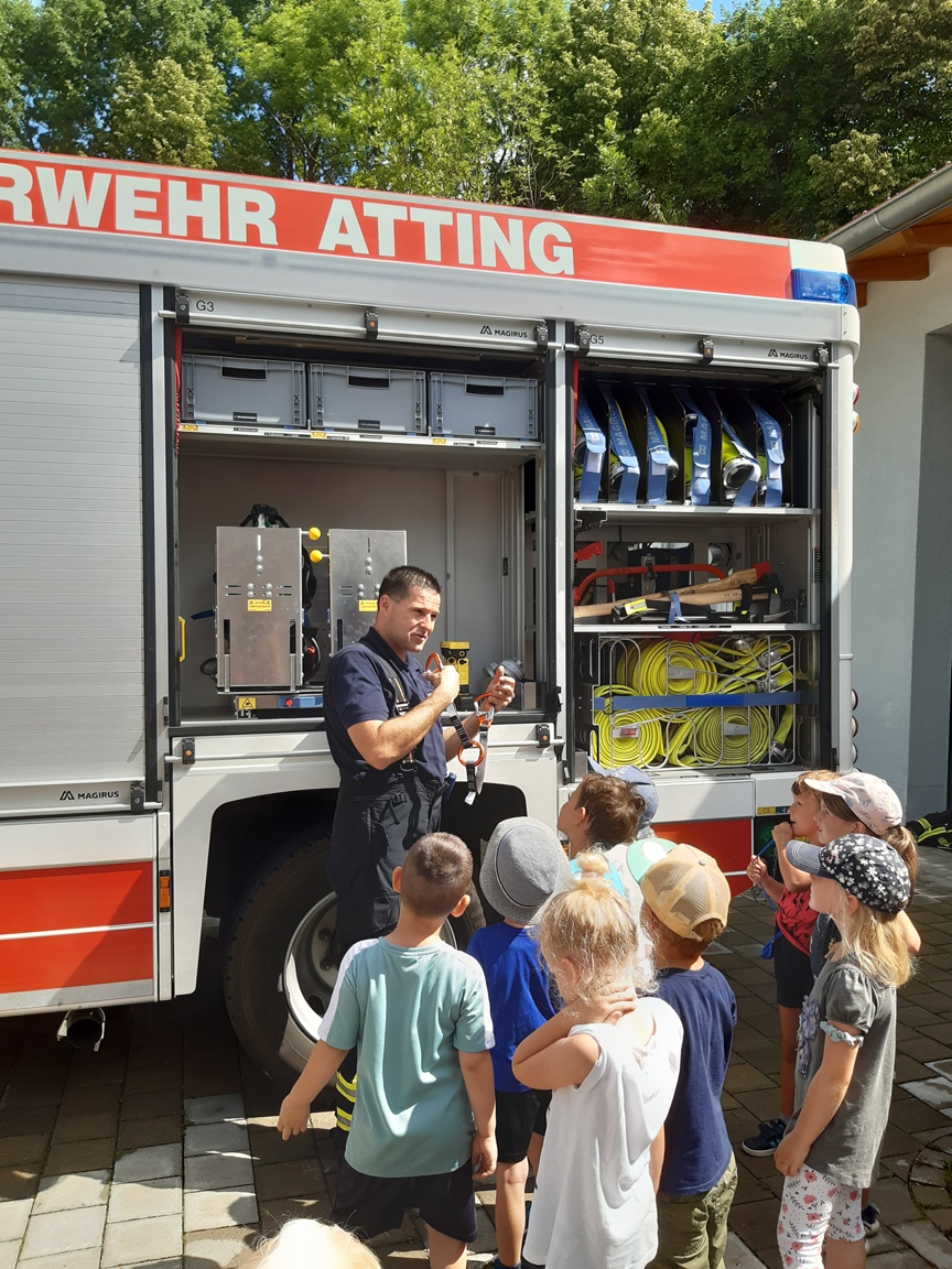 Der Kindergarten Atting hat die FFW Atting mit den Kindergarten- und Krippenkindern besucht. Es war ein tolles Erlebnis und die Kinder waren sehr beeindruckt!!!! Florian und Ingmar haben den Kindern alles prima erklärt und am Schluss gab es noch eine kleine „Löschübung“ – und so sagt die Kindergartenleitung DANKE.